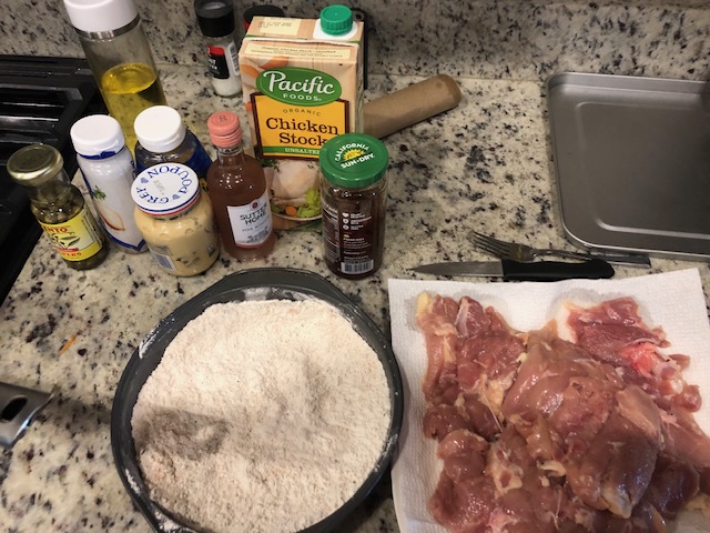 If you haven’t pounded out your chicken, do it now and dredge in flour mixture.