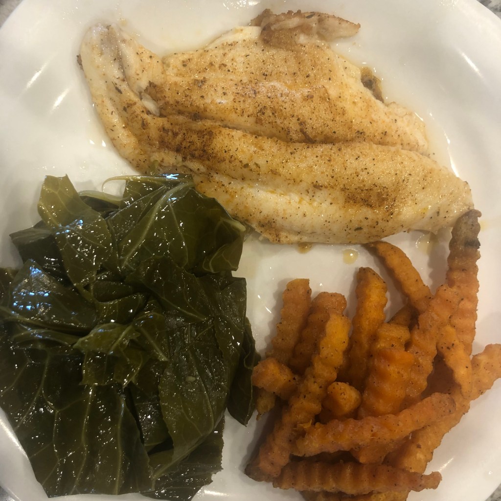 Southern meets North Detroit. We never had real greens growing up; we had canned spinach with white vinegar. After 25 years in the south, I have come to enjoy greens. The classic has a ham hock, but I used bacon. I’m pretty sure Worcestershire sauce isn’t used, but it’s in the pot. Creole seasoning brings some spice. The apple cider vinegar brings out the flavor of everything. I hope you like it.
