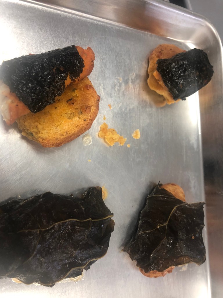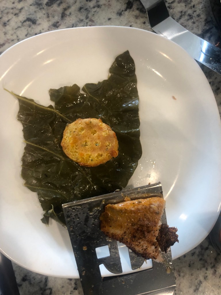 This is a gentle ribbing on some friends at Erin’s Elderberries who like sushi as long as it’s cooked. This is also for people who don’t like fish unless it’s fried or blackened. God love ya. It’s food, y’all do like but presented in a sushi format. We have a hush puppy replacing the rice. (Sushi translated means with rice.) Then no raw fish but blackened catfish. I replaced the seaweed (nori) with collard greens. Lastly, replacing the yum yum dipping sauce with Alabama white BBQ sauce. (Sorry Erin, but I used horseradish.) I hope we are still friends. Two Alabama natives gave it a thumbs up. I hope you like it.