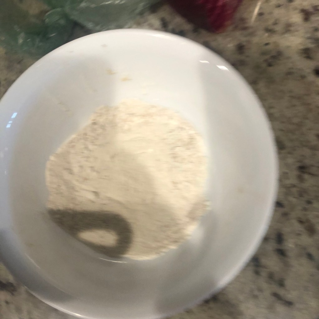 Mix flour with Old Bay, garlic powder, Italian seasoning, paprika, and onion powder.