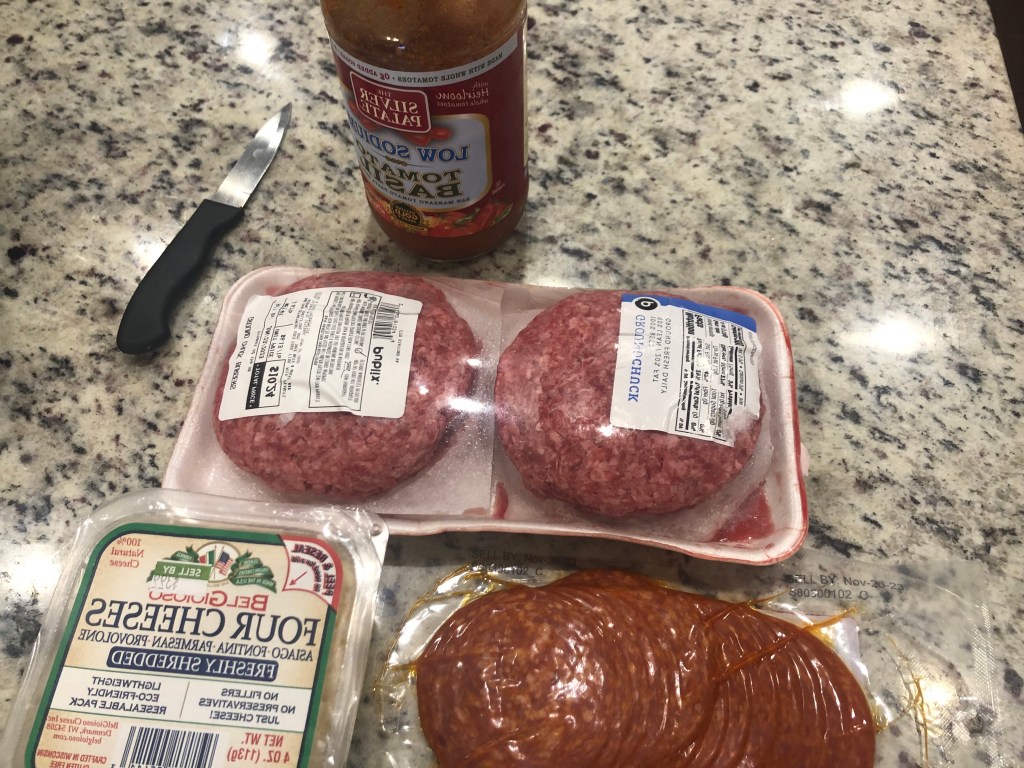 Italian flavors in a burger. Italian herbs and cheeses, all topped with marinara sauce. I forgot the pancetta, but you could add it. I recommend you not do this one on the grill. There will be spilling and fire. That sounds like something out of the Old Testament. I hope you like it.