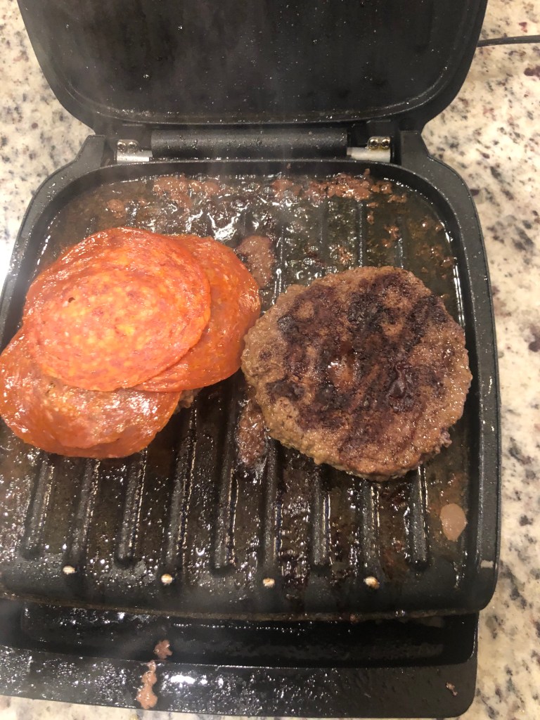 Griddle hamburger until desired done-ness (About five minutes per side)