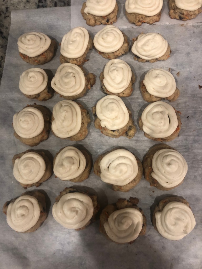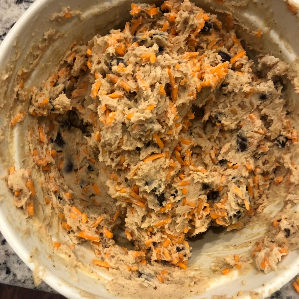 I’ve done a carrot cake cookie before, but this is an update, or better yet, an upgrade. The upgrades are more spice, chocolate covered raisins, and rum instead of vanilla. It has fresh carrots for texture, and the spice level comes through. I hope you like it.
