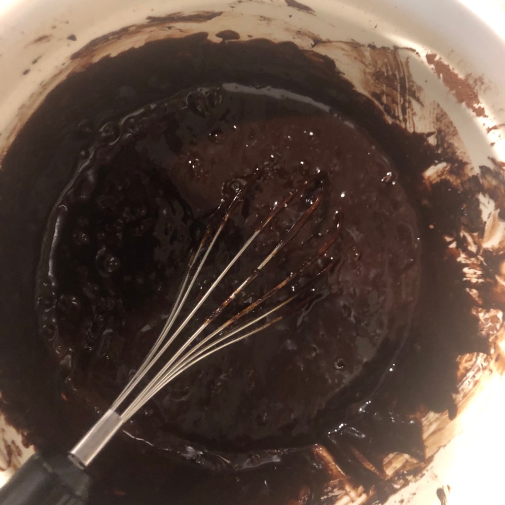 Add butter and chocolate chips to a microwave safe bowl and microwave in 30 second bursts until melted and smooth. Whisk after burst.