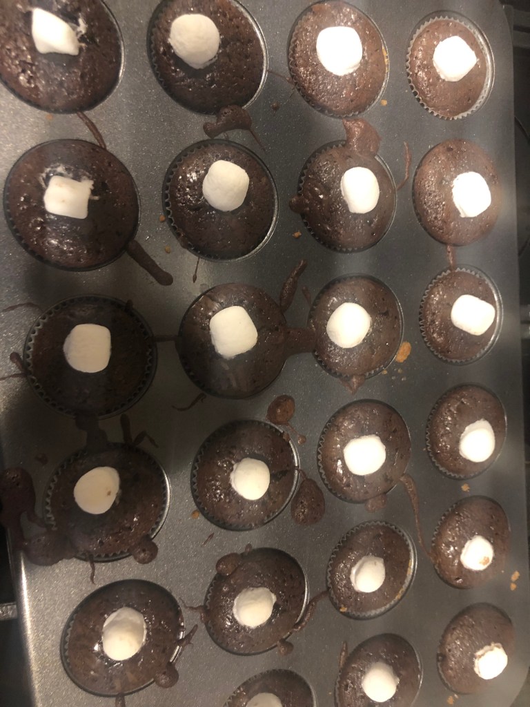 It’s summer – ya gotta have a s’more. This is a riff on a flourless brownie I have been doing for a while, light and airy with the addition of a graham cracker crust and mini marshmallows. I did this mini style using a mini muffin pan. I even torched the top. I hope you like it.