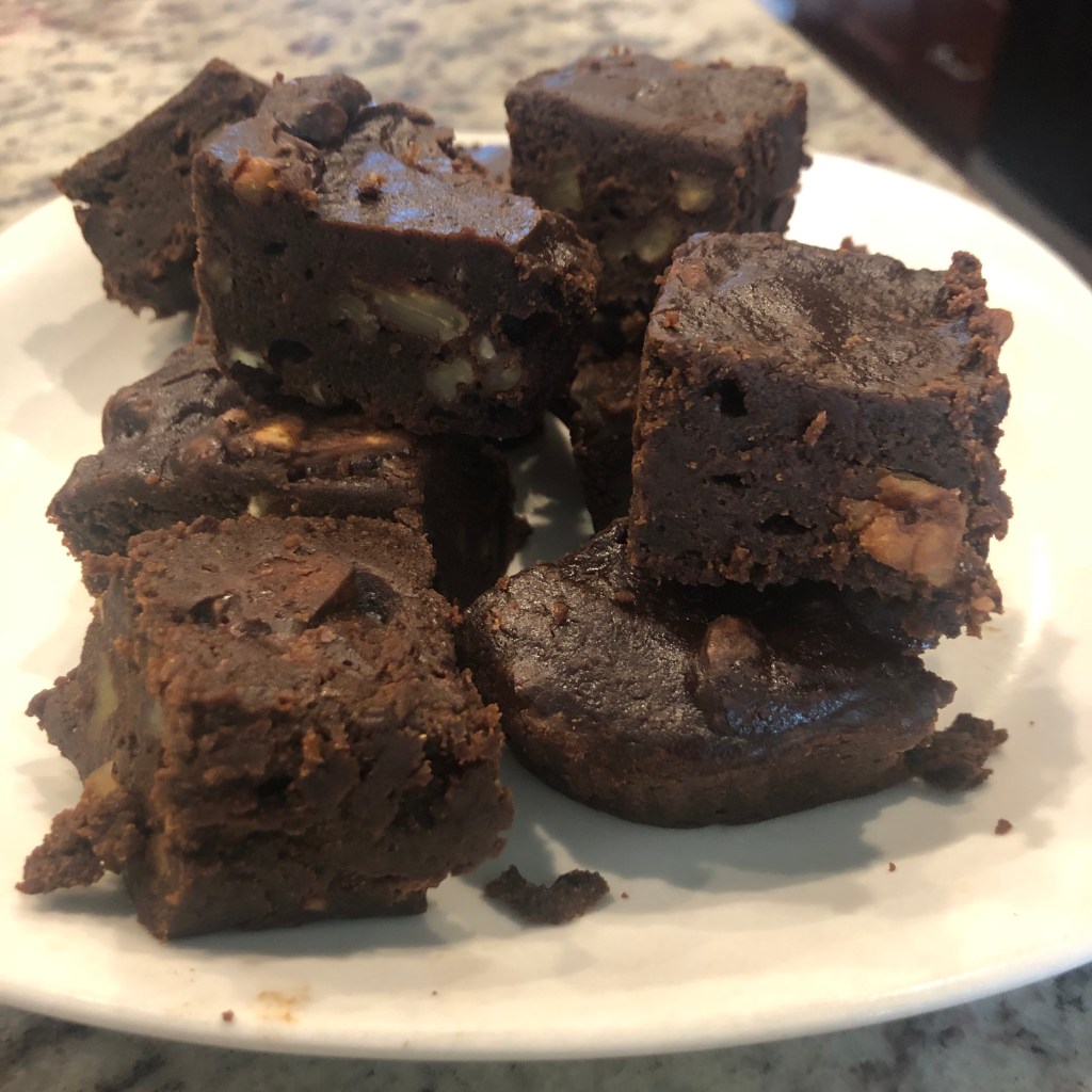 This is a nod to all the vegans and to all the pumpkin spice fanatics out there. Chocolaty with a hint on pumpkin and some pumpkin spice. I substituted pumpkin purée for the eggs and pumpkin spice almond milk for oil. I added pecans for a little texture. I hope you like it.