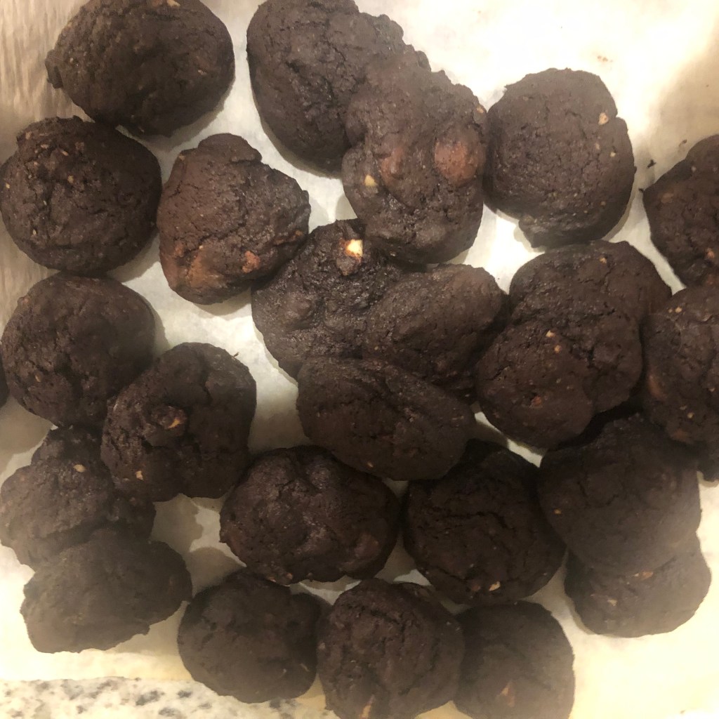 Spicy cookies for fall. Tons of dark chocolate flavor along with cinnamon, ancho chili, and cayenne. There are also cinnamon candied almonds and at my wife’s insistence, dark chocolate chips. (Nice call, what else you got?) I hope you like them.