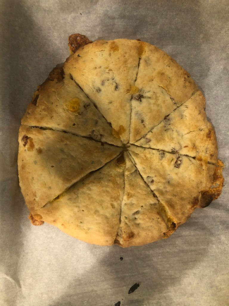 I was speaking with Susie from Susie Scones and asked her a question. Has she ever done a savory scone? Well, she was intrigued by the thought of having something like that at the Warrenton Farmers Market. I decided not to wait for that day. (Susie will make one that will put me to shame.) Here is a quick rundown: maple glazed bacon, thyme, rosemary, more maple syrup, and some aged cheddar cheese. I hope you like it.