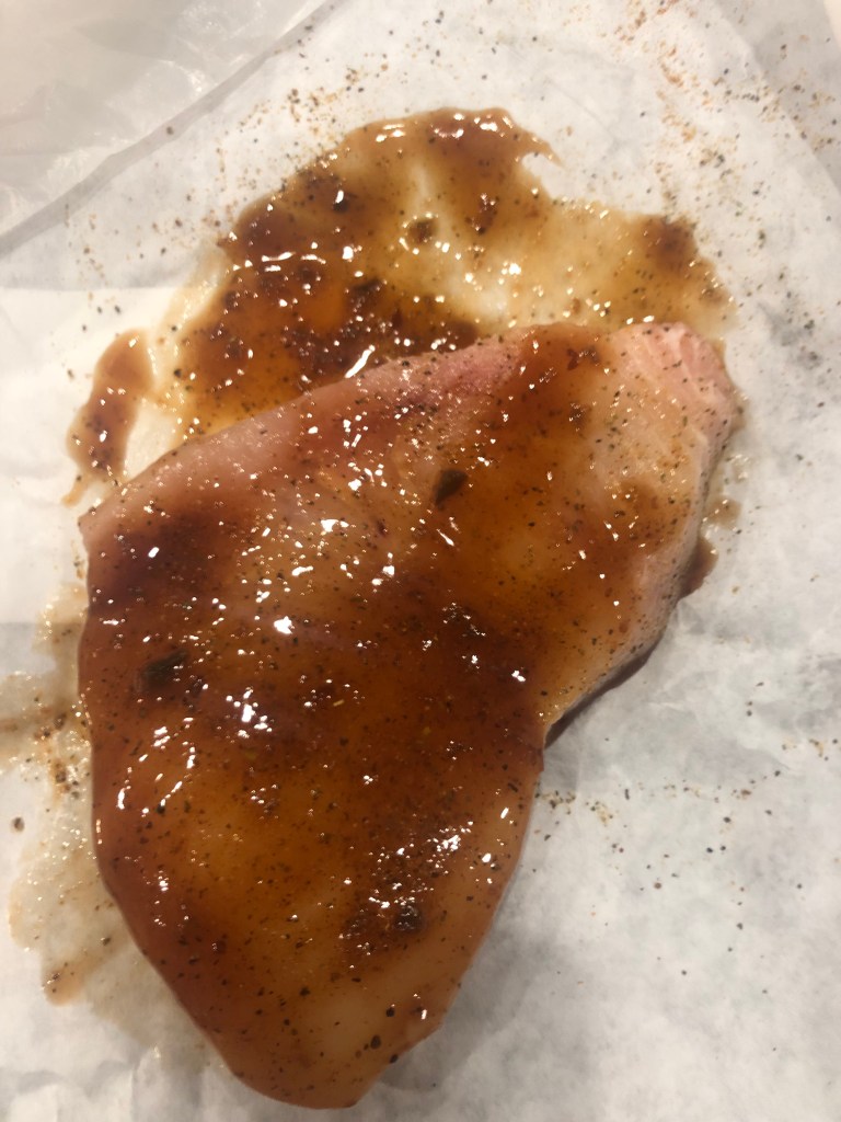 Add bbq sauce to both sides of fish.
