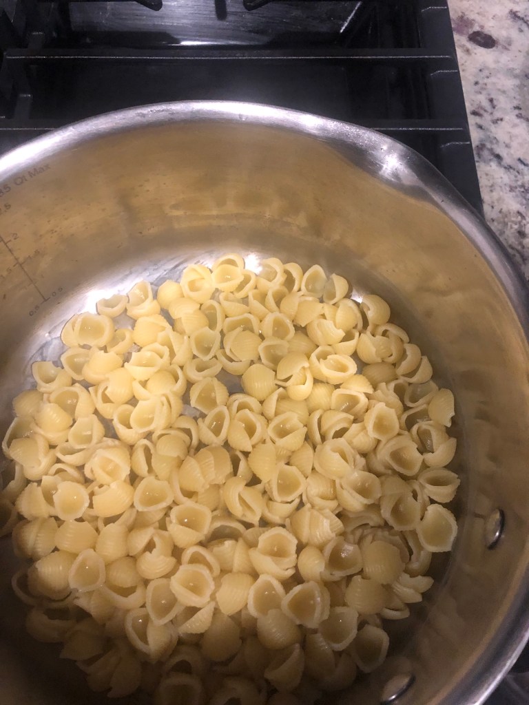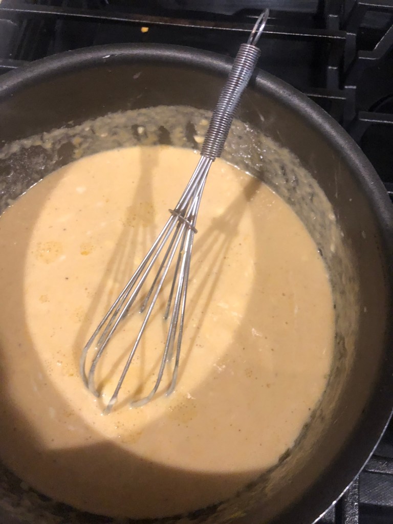Add cheese in three installments and continue stirring. Stir until cheese is melted.