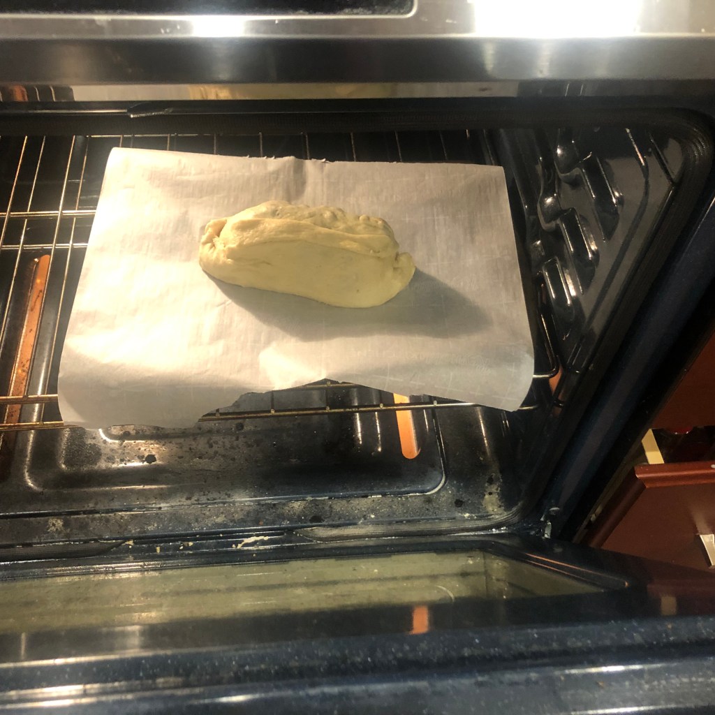 Wrap dough and seal around pork. Then cut a small slit to allow steam to exit.