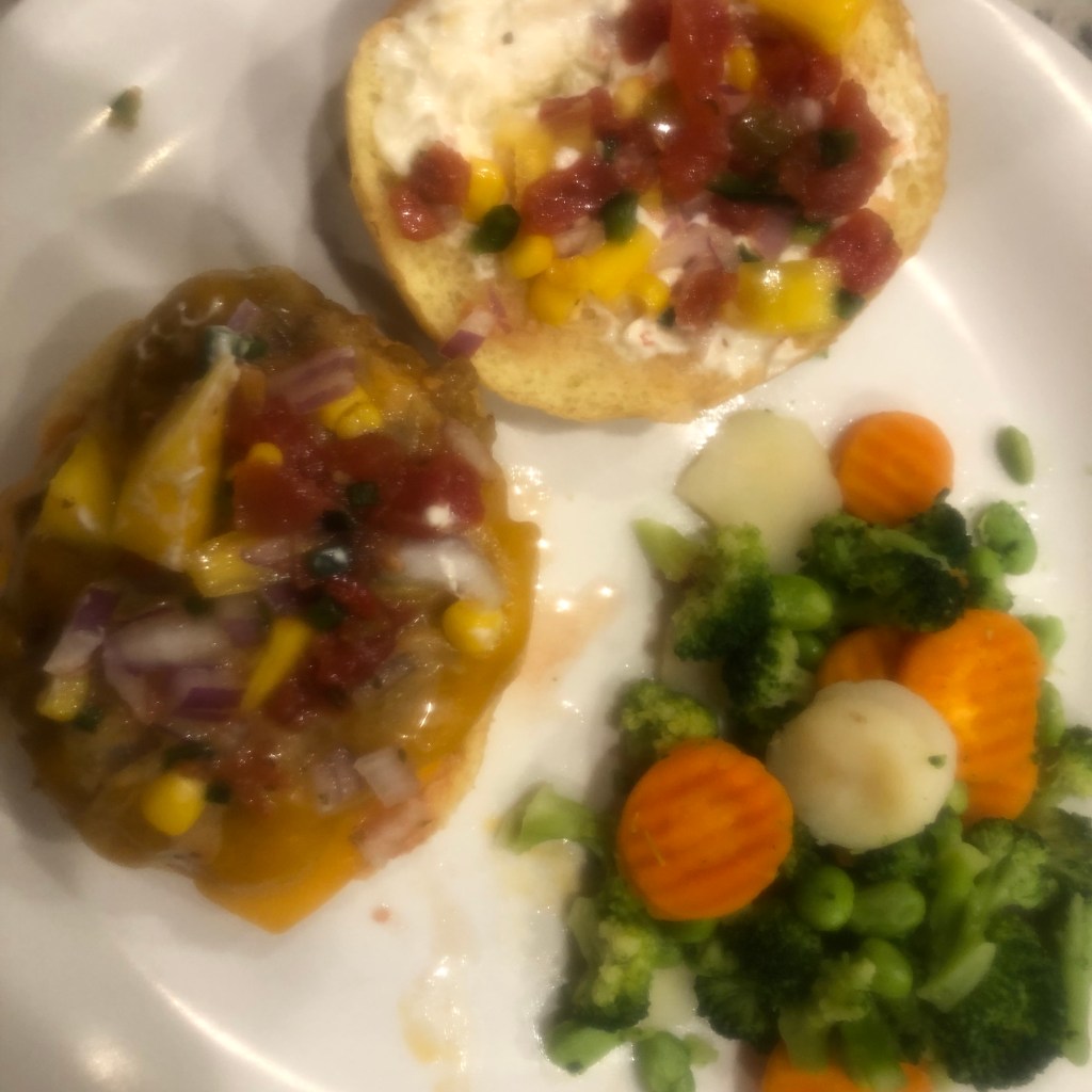 Chorizo is one of my favorite ingredients to use. I take it out of the casing and use it in bulk form, in this case as a burger. Now, this is a burger that has a lot of south-of-the-border flavors, and that makes you a wiener because you never sausage a thing ( from a billboard on I 95 is SC.) Chorizo, cheese, a fresh spicy mango pico de gallo, sour cream on a brioche bun. So spicy, sweet, sour, herby flavors in every bite. I hope you like it.