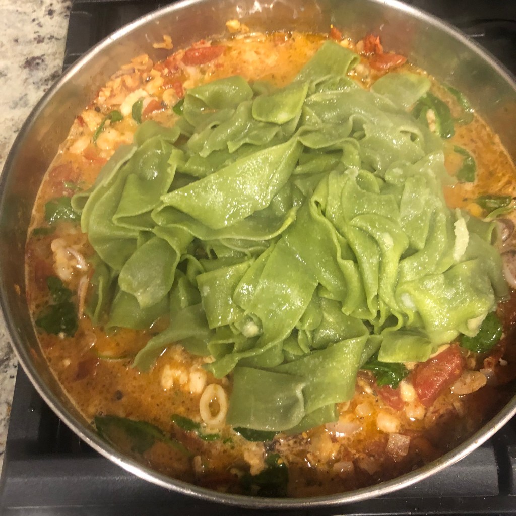 16 ounces spinach pappadelle (from Pasta Ilgatto)