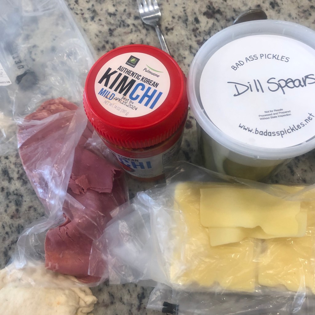 I decided to have New York travel to Korea and then stop in Central American. All the things you love about the Reubens but with some Korean kimchi kick. Lean corn beef, melty Swiss cheese, and some thousand island dressing all in a crispy dough shell. Now, I know that there is no rye bread, but pizza dough will do. The Reuben is usually a two-handed sandwich, but now you have a hand free for a drink. Bad Ass Pickles will be the pickle on the side and in the empanada. I hope you like it.