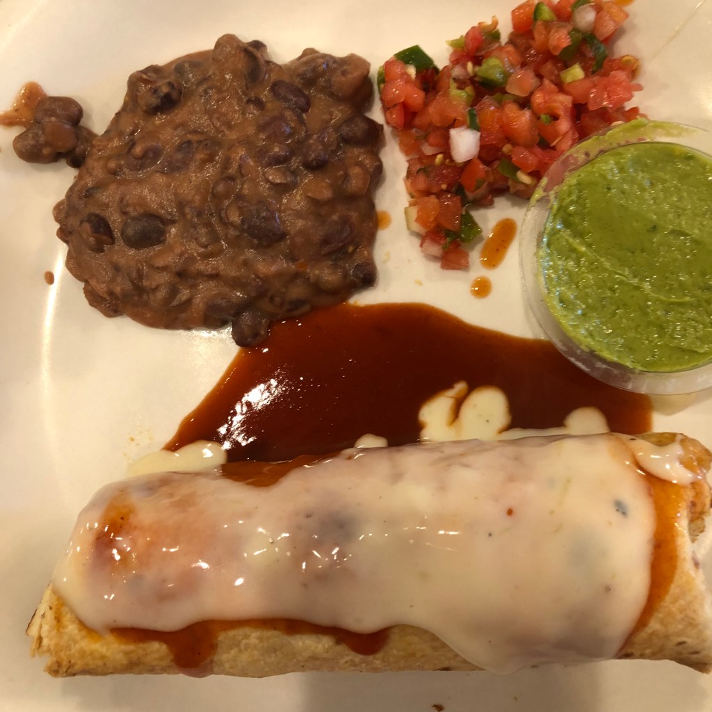 Place burrito (which is now magically a chimichanga through cooking) to a plate.