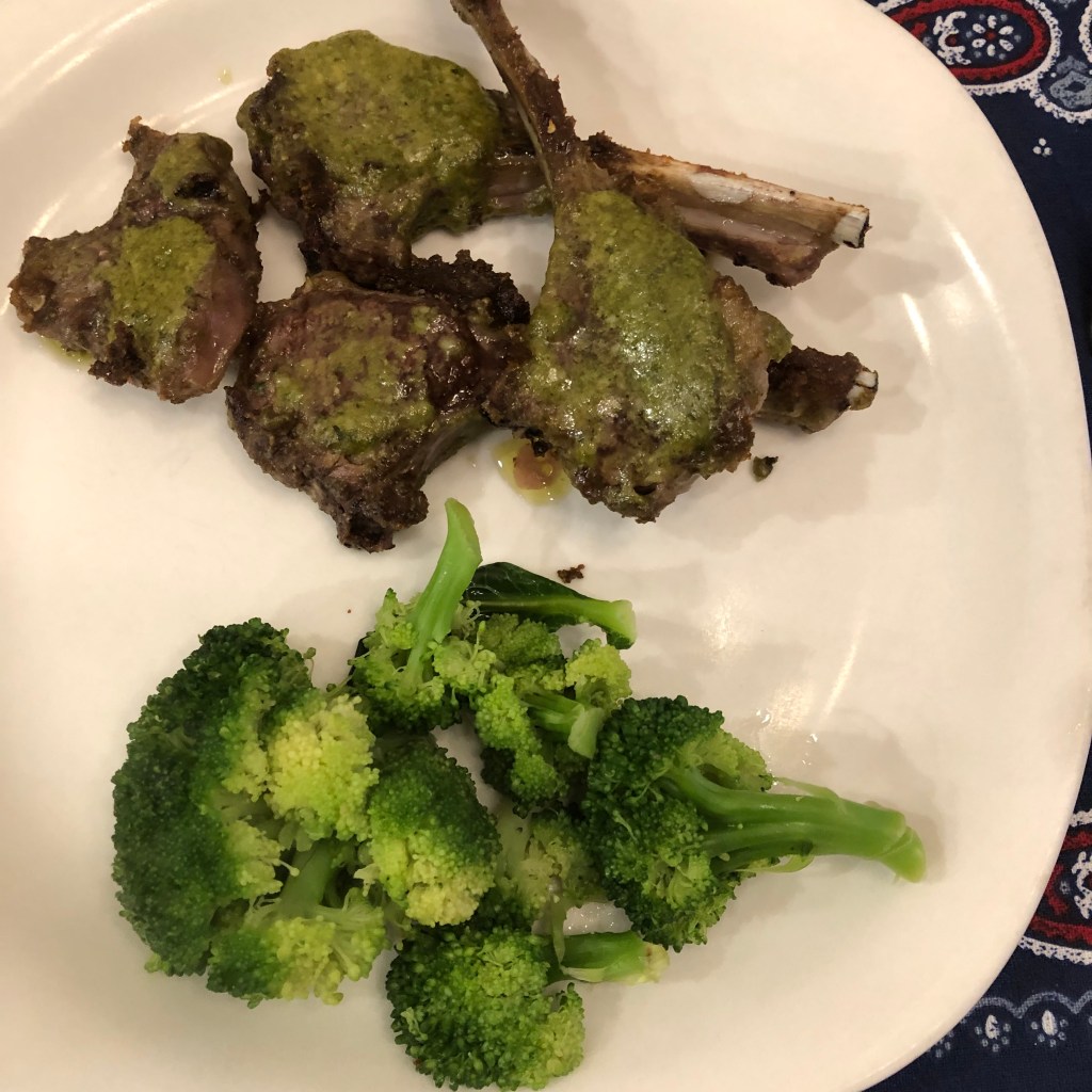 Pesto needed a spicy update, so the addition of jalapeños brought the heat. I used walnuts instead of pine nuts, lots of garden fresh basil with parmigiana and Romano cheese, and high quality olive oil. Just for fun I put it on lamb lollipops. I hope you like it.