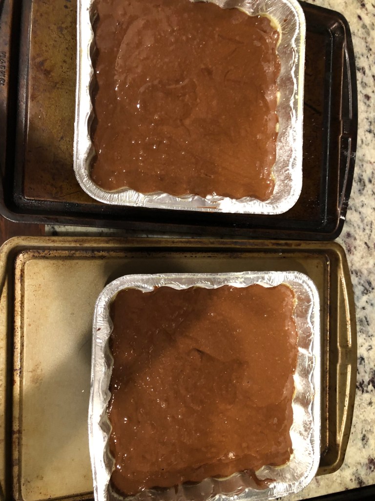 Butter and flour 2 8 x 8 foil cake pans.