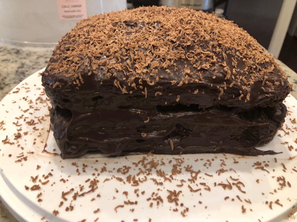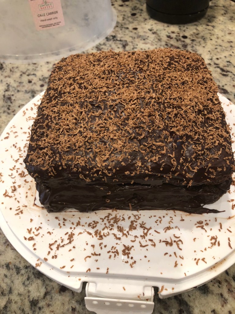 This is a big classic in the Borough of Brooklyn. Now, I took short cuts and some liberties making changes but keeping it recognizable. Change one: the original has chocolate pudding, but I went with chocolate mousse. I decided to use a shortcut with a box cake mix but upgraded it with coffee and better flavoring. No frosting – I used dark chocolate ganache which brings a lot of creamy flavor. I know there is a lot of chocolate. I hope you like it.