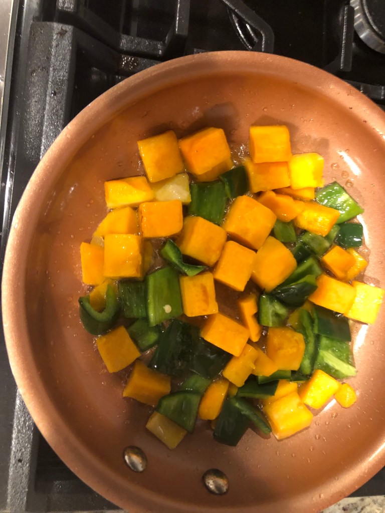 Add to pan oil, squash, poblano, apples, and salt and pepper. Cook until brown on each side and crispy.