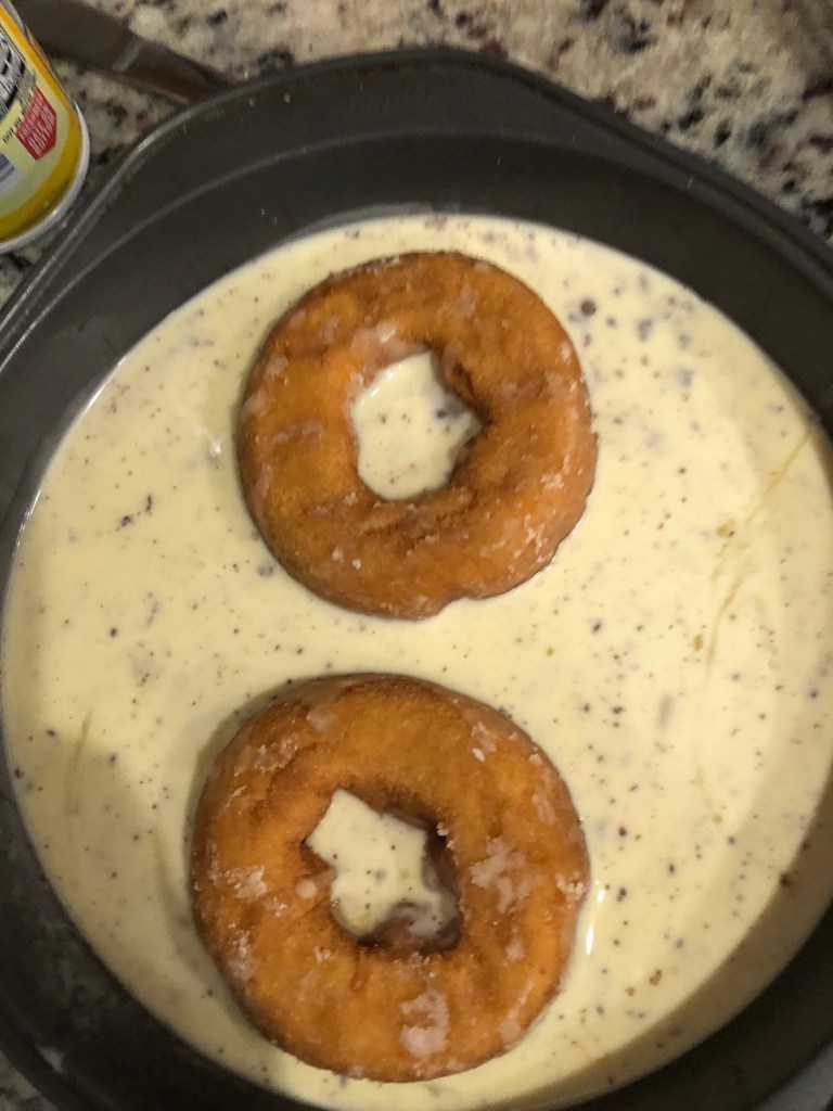 Soak donuts in egg/milk batter for 5 minutes per side.