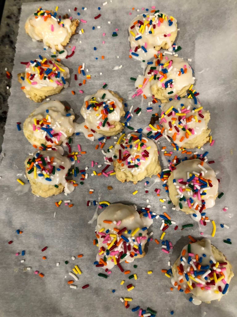 This is a classic from the old country. The almond flavor is front and center; traditionally almond extract is used, but I prefer the taste of amaretto. The texture is soft with a flavorful glaze and holiday sprinkles. There is just a hint of cinnamon which plays well with the almond flavor. I hope you like it.