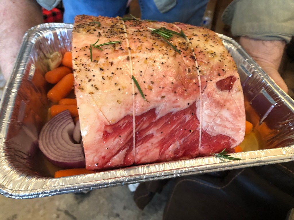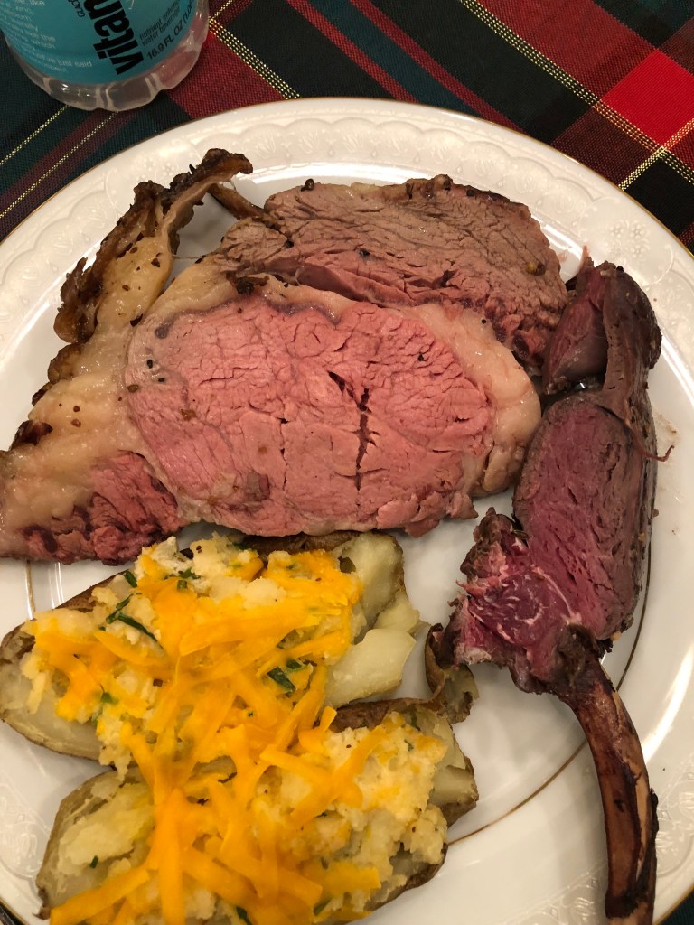 We have prime rib at the holidays most years. This year was no different; we got ours at A to Z Butcher in Stafford. Here is why I use a local butcher instead of a local mega-mart: a request to debone the roast and tie the bones back on. That said, I tried a new cooking process. I fired up the Webber grill hot and cooked the roast at about 450 with a lot of wood chip smoke and then finished the roast in the oven for about 90 minutes until medium rare. The seasoning is listed below. I hope you like it.
