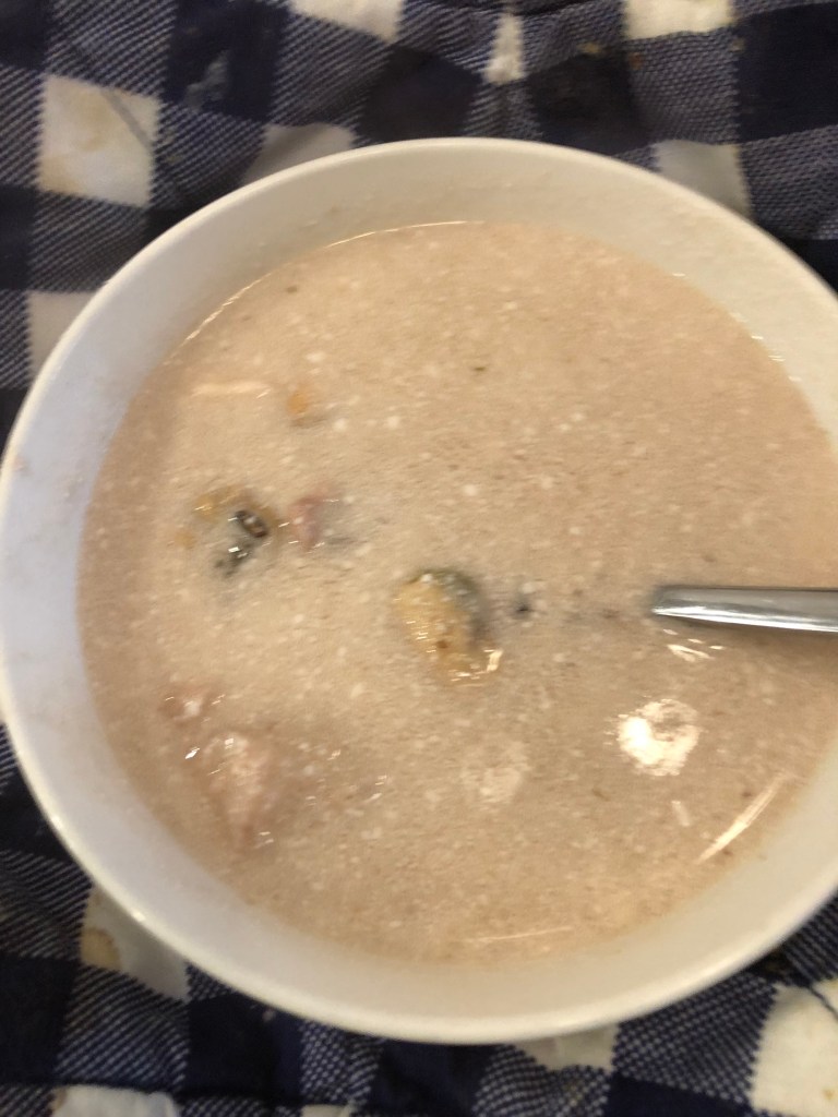 This dish is unique because it only has three components that are always the same only two with me. Cream, clam juice and Old Bay always are in the dish. Now the rest is dependent on what the fisherman caught that day. Now they catch haddock almost every day but they don’t have that near me so I used fresh cod. I then added a lot of clams, mussels, shrimp, and squid. Now I know I said three but my wife doesn’t do a lot of dairy so I used coconut milk. I know I said Old Bay but they use B O seasoning. I hope you like it.