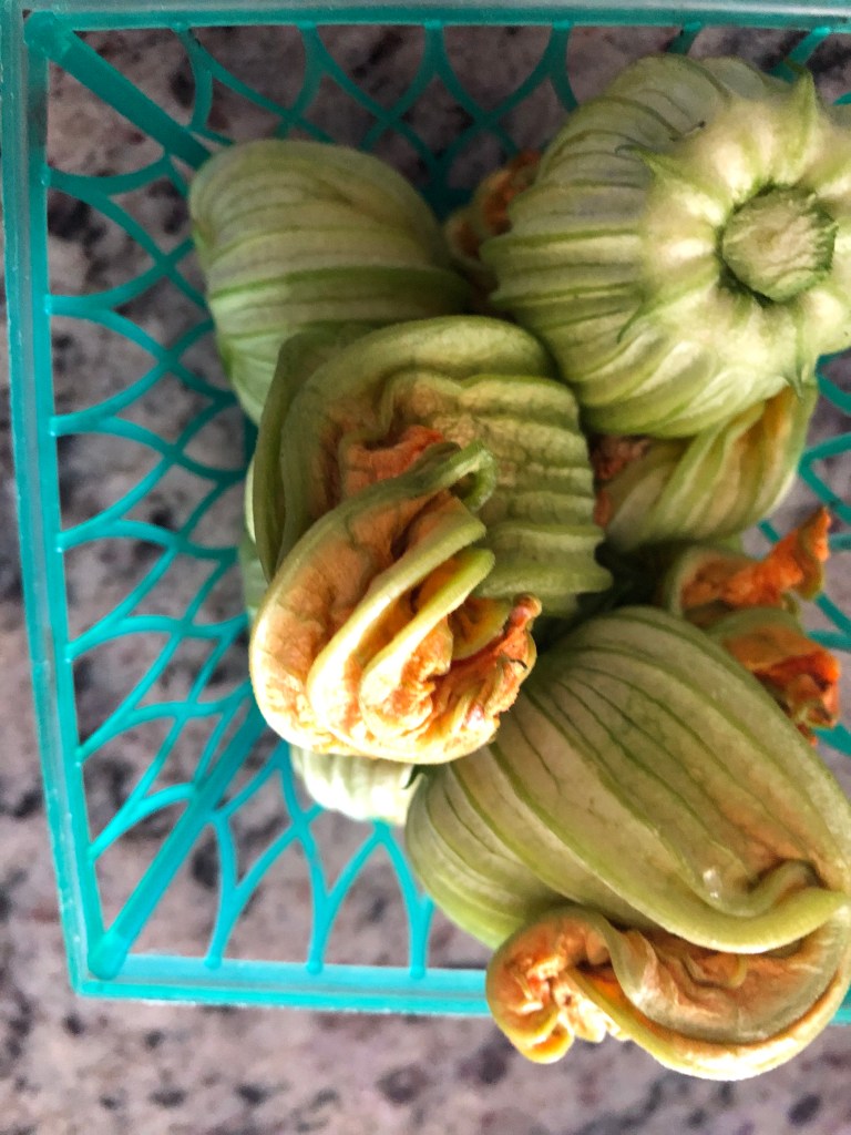 I know I did a zucchini blossom recipe last week, forgive me for doing them in consecutive weeks. My friend Natalie gave me the idea to use crab meat and of course if Chef Natalie gives me an idea I run with it. So I did a crab, butter, breadcrumbs and Parmesan stuffing. I gave them to the crash test dummies and got the OK to place it on the blog. I hope you like it.