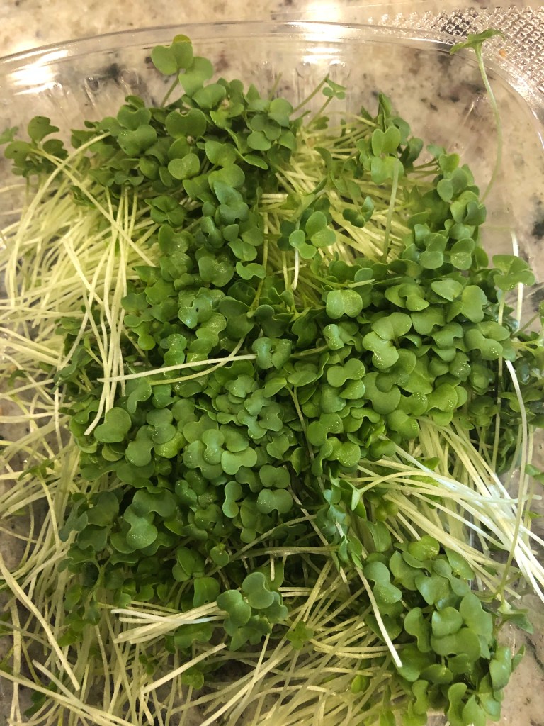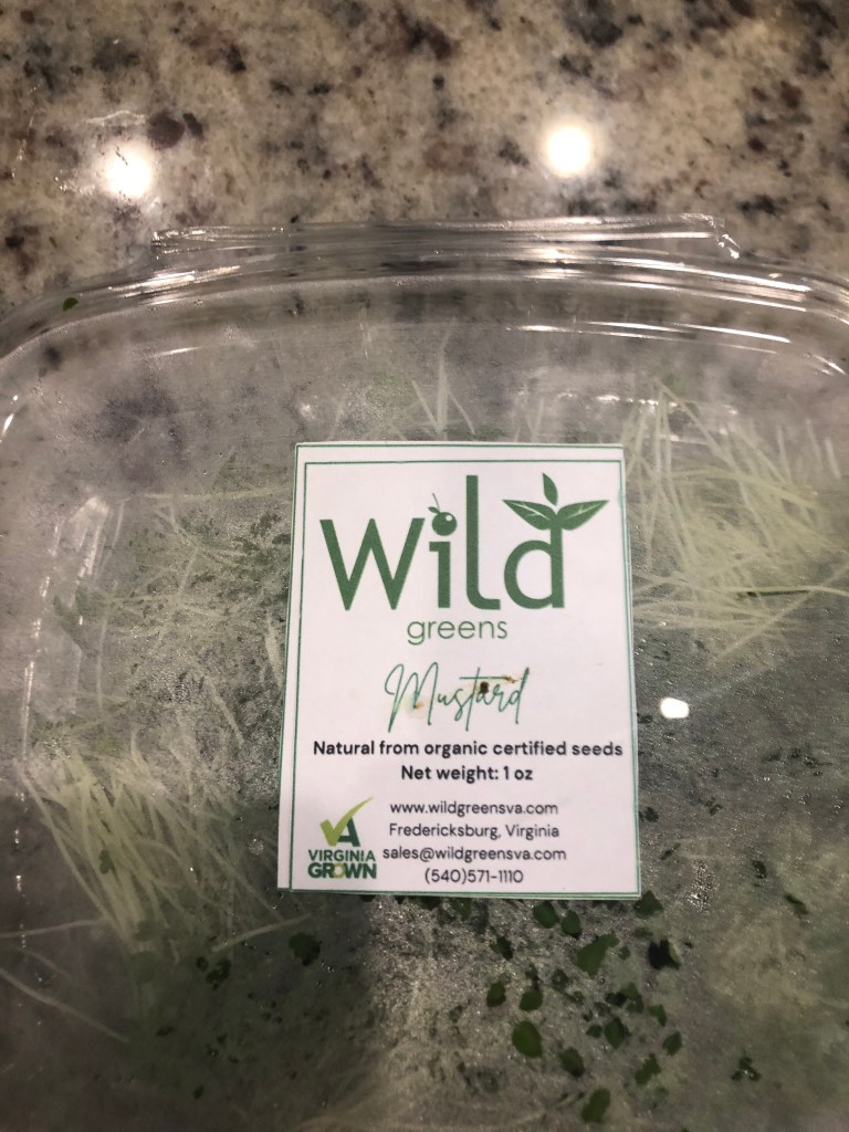 The Wild Greens micro green vendor was at the Stafford Long Family Farmers Market. I tried the radish greens and the wasabi and decided I was going to make some pesto. This is going on a fish to be named later so I will show you that at a later date. I used walnuts, lemon, olive oil, Parmesan cheese, parsley and basil to provide a flavorful base. Very herbaceous with a minor bite. I finished with salt and pepper. I hope you like it.