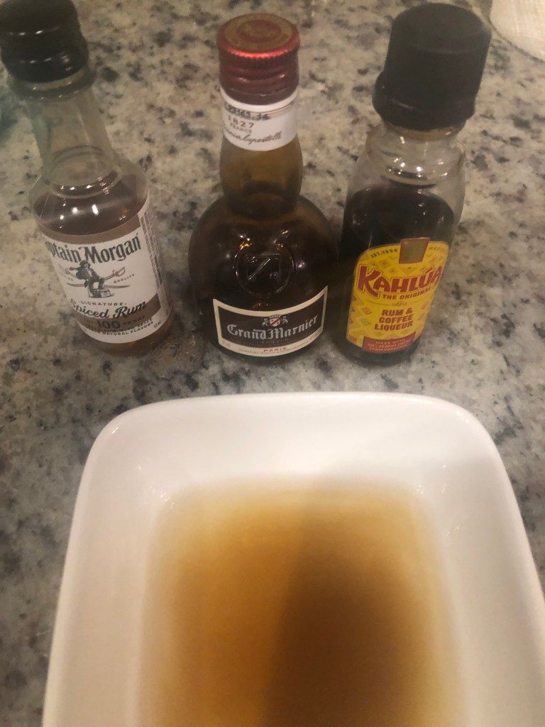 I know that tittle is a lot to absorb. First the flourless brownie which is so smooth you don’t have to chew. It just melts. Next the flavors of rum, orange liquor and kahlua all come to the party.(And what a party it is). Those are the main ingredients in Spanish coffee. Chocolate is the base flavor but all the flavors play well with each other. I hope you like it.