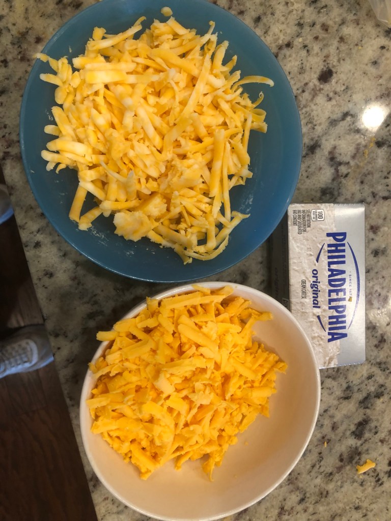 I got my annual package from Pinconning Cheese Company. It contained sharp Pinconning cheese and elk summer sausage. I made Mac and cheese. I had to feed a bunch of folks so this recipe fits a 9 x 13 pan. The ingredients include 4 cheeses and a crispy topping. Pinconning cheese has been used in the World Mac and Cheese competition and won 3 times. I hope you like it.