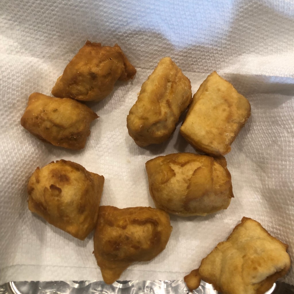 Add 8 squares to oil when bottom gets golden brown. Flip and brown other side.