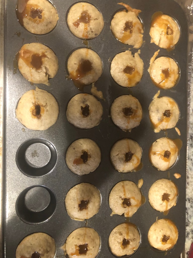 I’m doing a new twist on a classic the New Orleans dessert Bananas Foster. Bananas, rum, caramel all in a muffin. I added some dehydrated bananas for some texture and pecans well because I wanted to. I left out nuts because of the audience I was cooking for. I hope you like it.