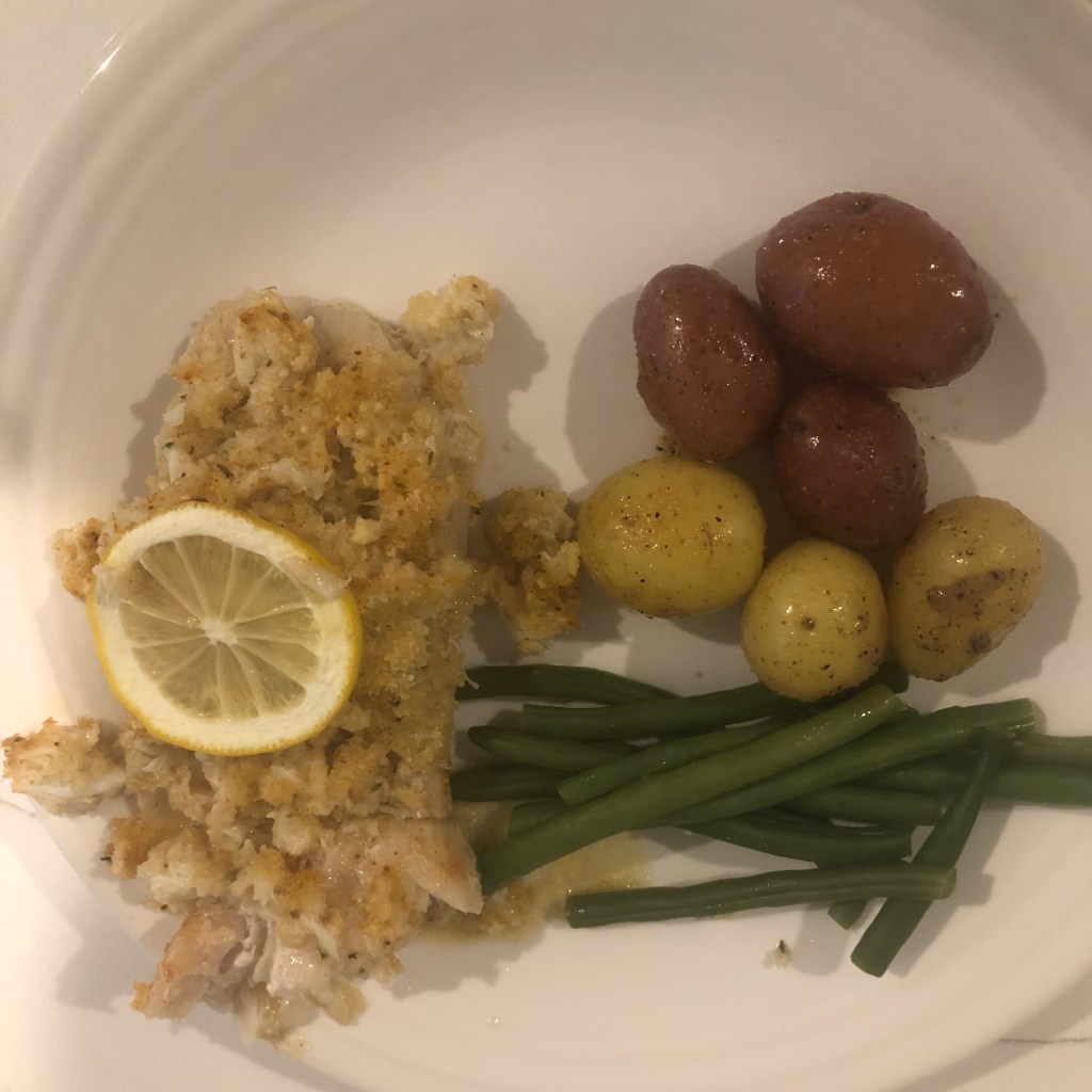 We were vacationing in the Outer Banks and went to a seafood provider. The red fish looked great, and since I was unable to catch any, I bought it. Next, they had some blue crab which I was also unable to catch, so I bought it. The wine, let’s face it, I bought. I added some seasonings, butter, and some breadcrumbs, and we had dinner. I hope you like it.