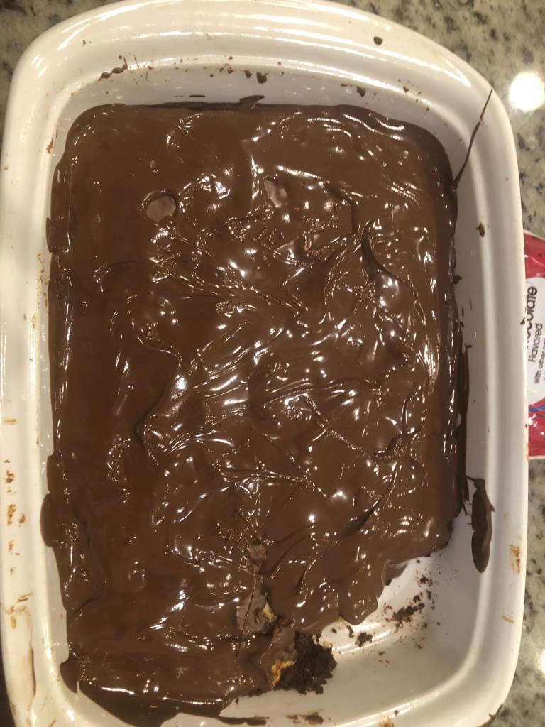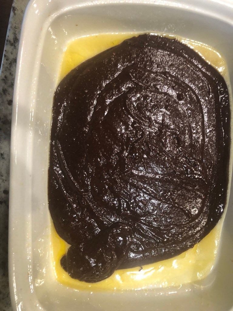 Pull out brownies after 10 minutes and add coconut mixture to top.