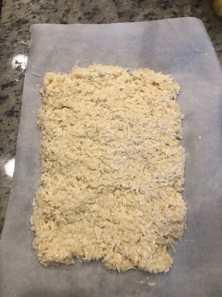 Flatten mixture on parchment paper to 8 1/2 x 12.