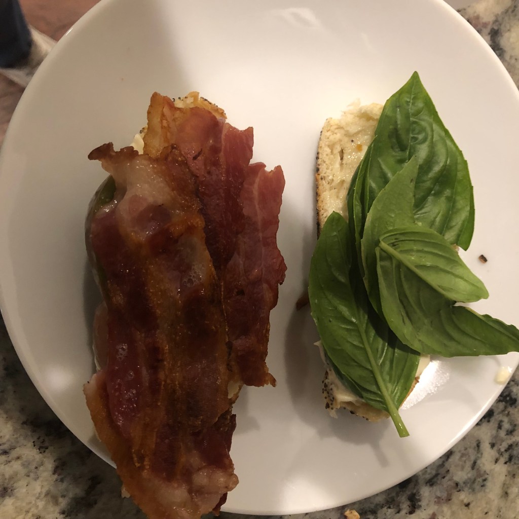I was at the Stafford Farmers Market and loaded up on fresh produce like tomatoes and basil. I decided to do a riff on a BLT. First “B” salty smoky bacon, second “B” basil with that great smell, third “B” balsamic to add sweetness and a little acid. Fresh tomato slices are added to everything sourdough bread with a little mayo. I hope you like it.
