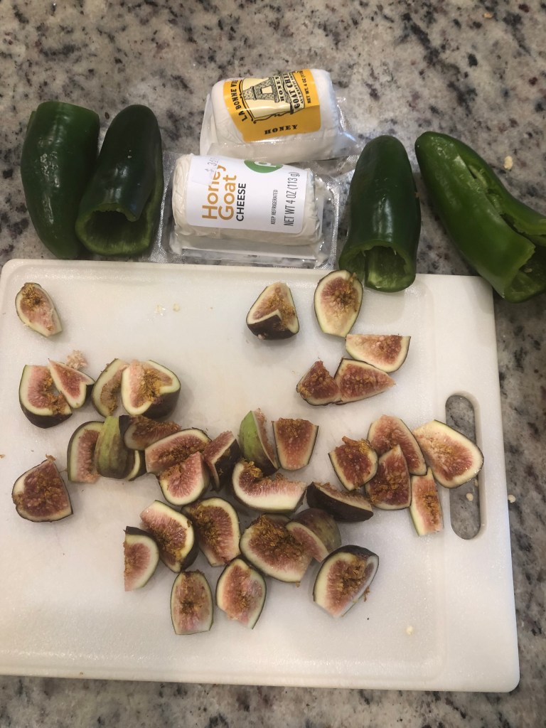 I love small plates or tapas dinners. This is a welcome addition to that tradition. Now if feel you want more heat you can use smaller jalapeños but I’m kind of a wimp. The honey goat cheese does provide a cooling effect. The bacon is of course bacon and by adding gives a salty, smoky element. I hope you like it.