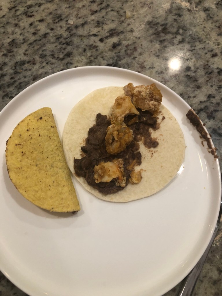 This dish reminds me of my days living in Tampa and the bounty of seafood I used to get. Conch when in season was easy to get and now can only get it when it’s available at my local mega market. I air fried it with another Florida treat fried plantains. Topped with some black beans, veggie slaw and remoulade sauce I felt I was back on the Causeway. I hope you like it.