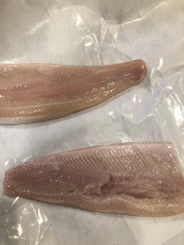 Place two fillets on a parchment-lined baking sheet.