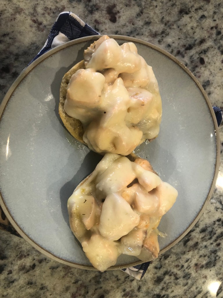 I have a source for Farrow Island salmon which is much better than the chemical color added farm raised salmon. I wanted a tuna melt but switched that out for salmon. I added some lemon butter sauce, capers for a briny flavor, and finished with havarti cheese. This is not as dry as canned tuna. I hope you like it.