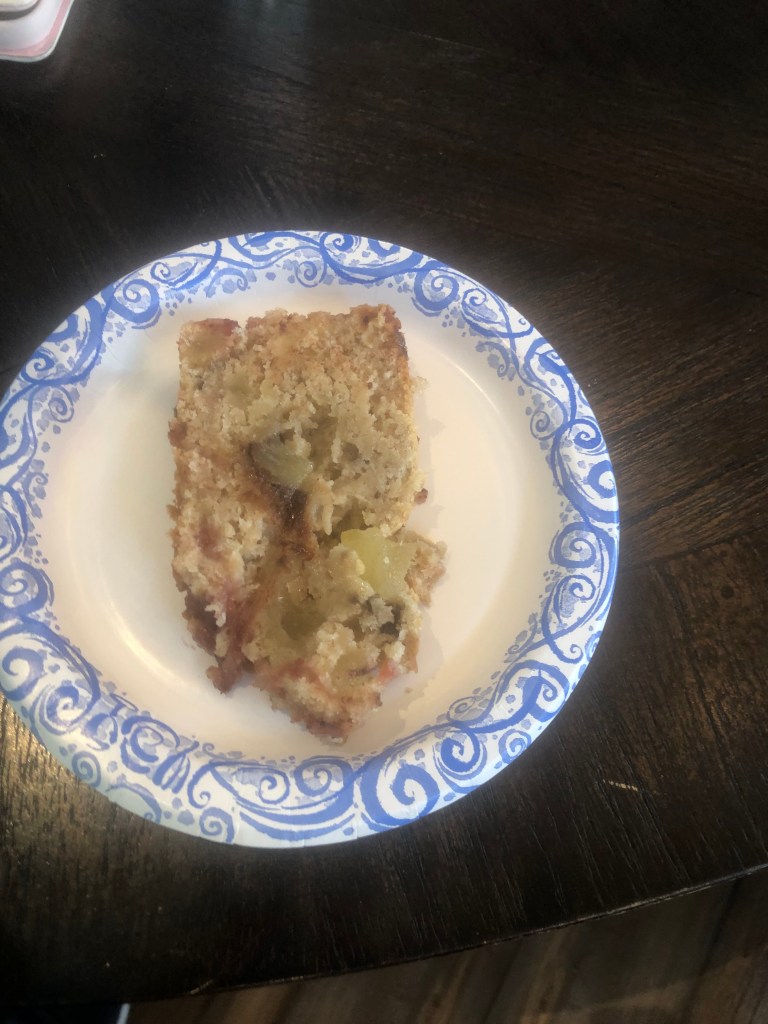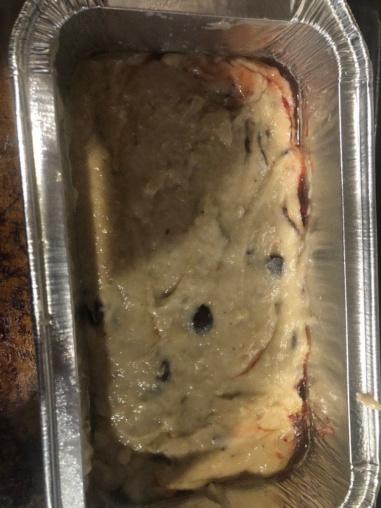 Until 6 years ago springs arrival meant I would get my annual banana split. Well my weight and my cholesterol levels put an end to that tradition. Then while making banana bread I thought why not add all the flavors of a banana split into banana bread. So I added chocolate covered bananas, dried pineapple, chocolate chips, strawberry preserves and spiced rum. Everything except the whipped cream and cherry. I hope you like it.