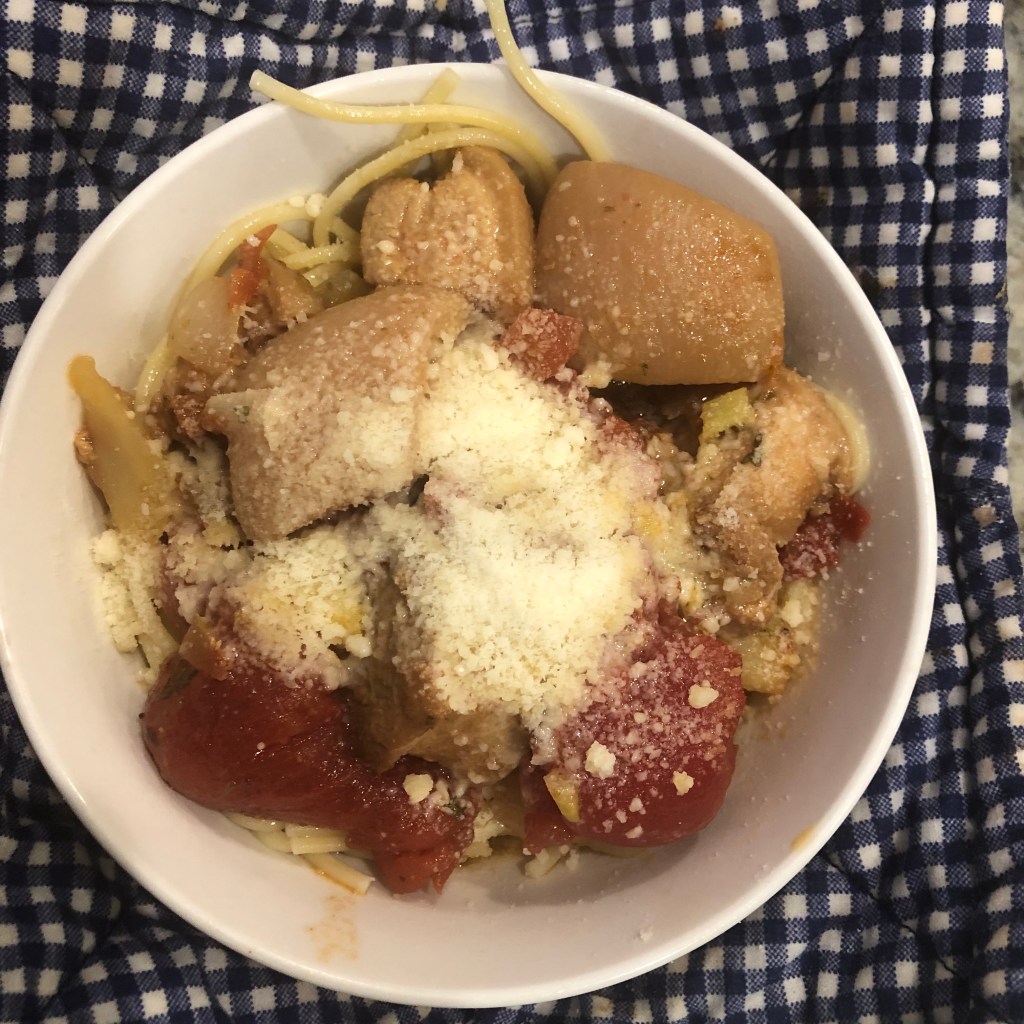 Serve over white rice. Gnocchi would be good also.