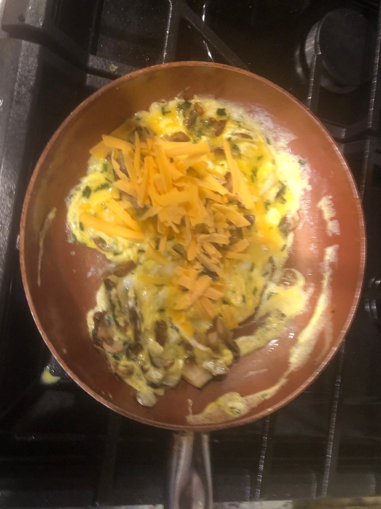 Let eggs cook for 30 seconds add cheese and stir for 10 seconds.